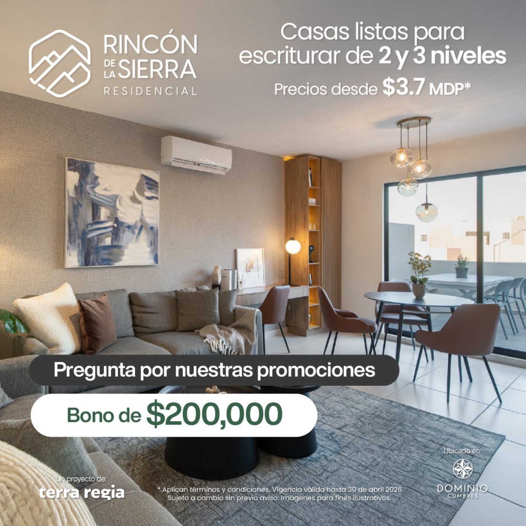 Rincón de la Sierra ofrece casas residenciales de 2 y 3 niveles, diseñadas para proporcionarte tranquilidad y confort en un entorno único y en armonía con la naturaleza. Aquí, tu patrimonio estará seguro.